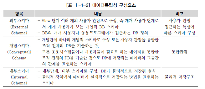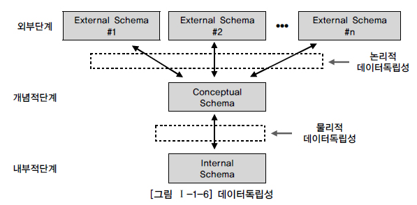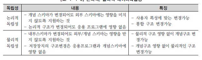 >> 물리적 구조 영향 없이 개념구조 변경 가능, 개념 구조 영향 없이 물리적 구조 변경 가능