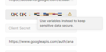 Tip. Postman 에서 Use Variables instead to keep sensitive data secure 가 나올 경우