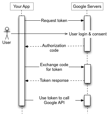 Developers 내에서 확인해보면, 구글 API의 OAuth 2.0의 큰 단계는 아래와 같이 동작하고 있다.