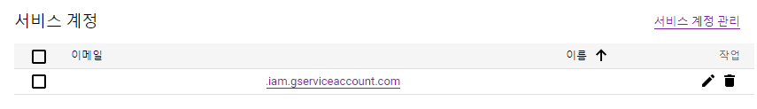 1. 서비스어카운트 사용을 위해서는 구글 콘솔에서 서비스어카운트 계정이 생성 되어 있어야 한다.