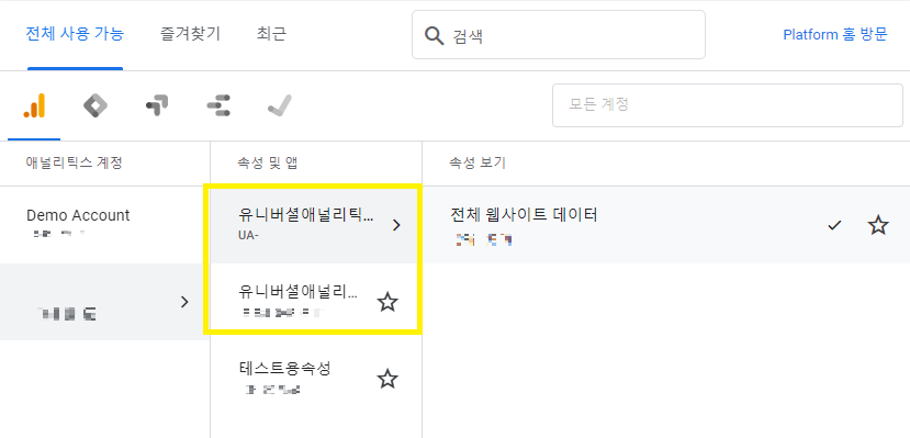 V4는 현재 Analytics 에서 변경되는 과정의 버전으로 ids 값이 숫자로만 구성되어 있다. (Ex. 123456789)