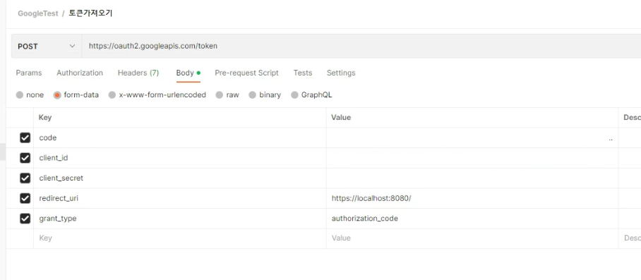 4. http request 로 https://oauth2.googleapis.com/token 호출 https://developers.google.com/identity/protocols/oauth2/native-app?hl=ko#exchange-authorization-code