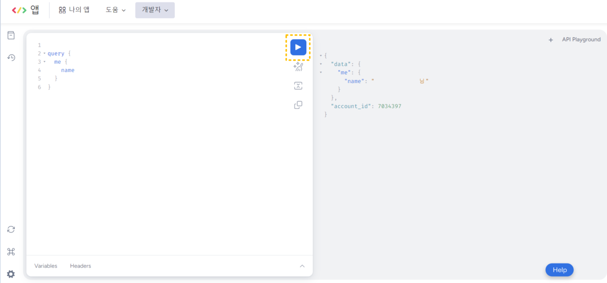 개발자 API 플레이그라운드로 접속하면 내가 만든 쿼리를 테스트 해볼 수 있는 공간이 나온다.