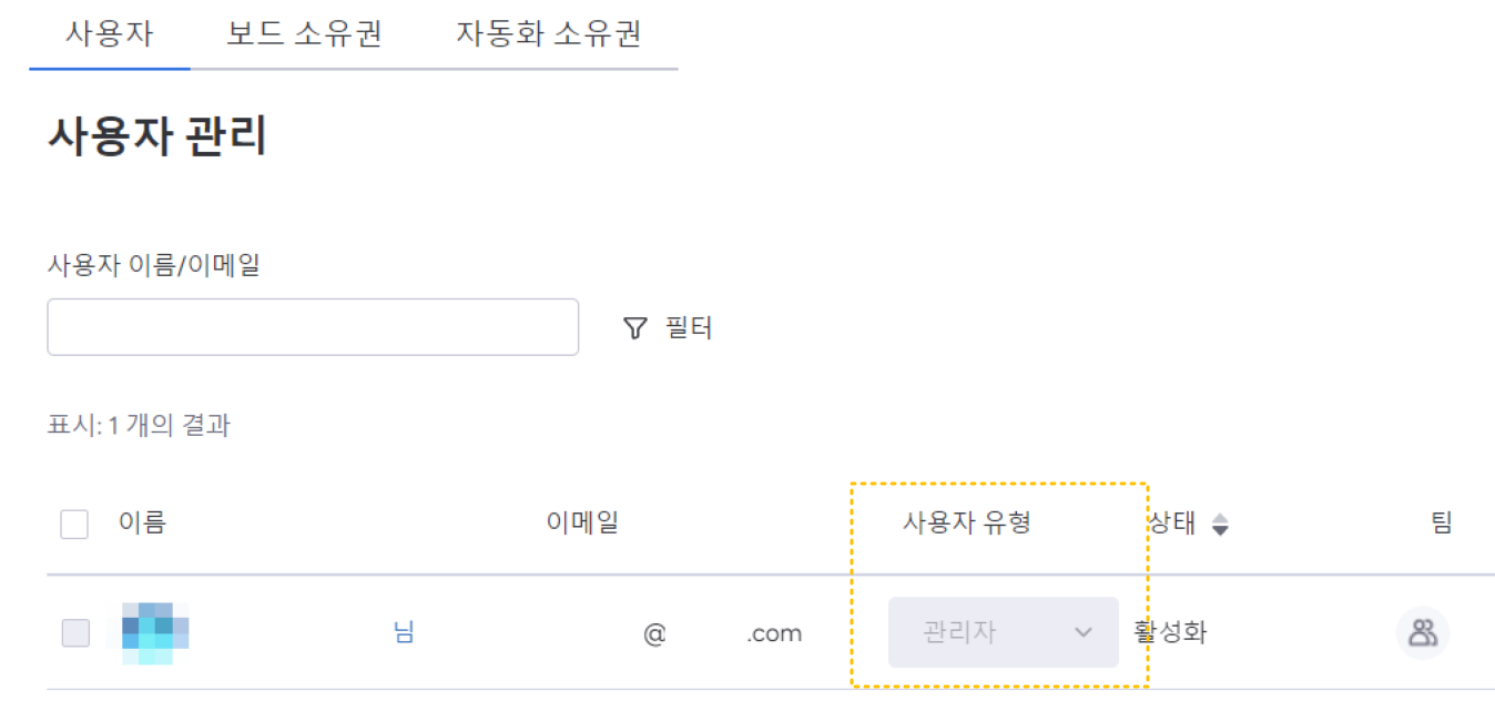 내 경우 아예 Monday 관리자로 셋팅하여 모든 보드를 볼 수 있는 권한을 부여 했다.