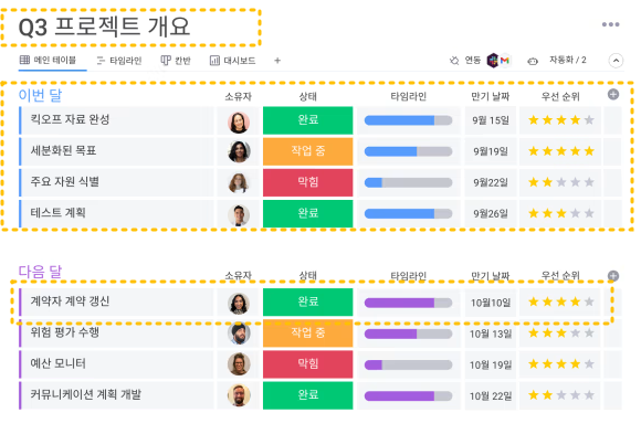 먼데이는 기본적으로 하나의 Dashboard 안에 데이터가 삽입되어져 있는 구조이다.