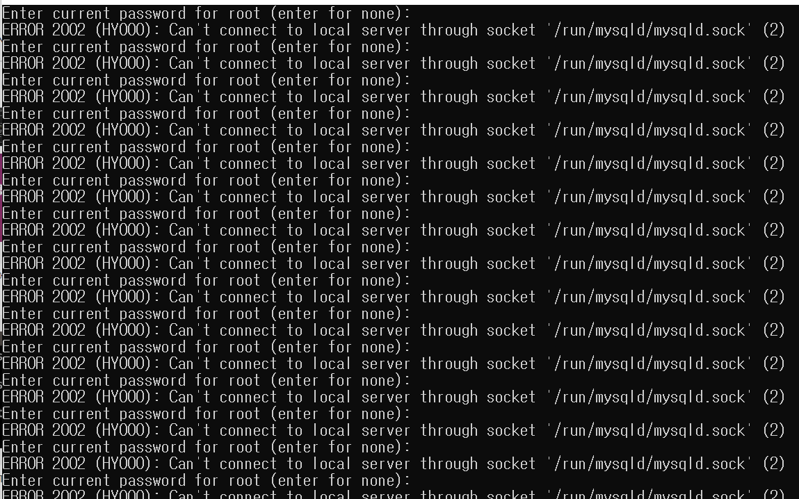 ERROR 2002 (HY000): Can't connect to local server through socket '/run/mysqld/mysqld.sock' (2)