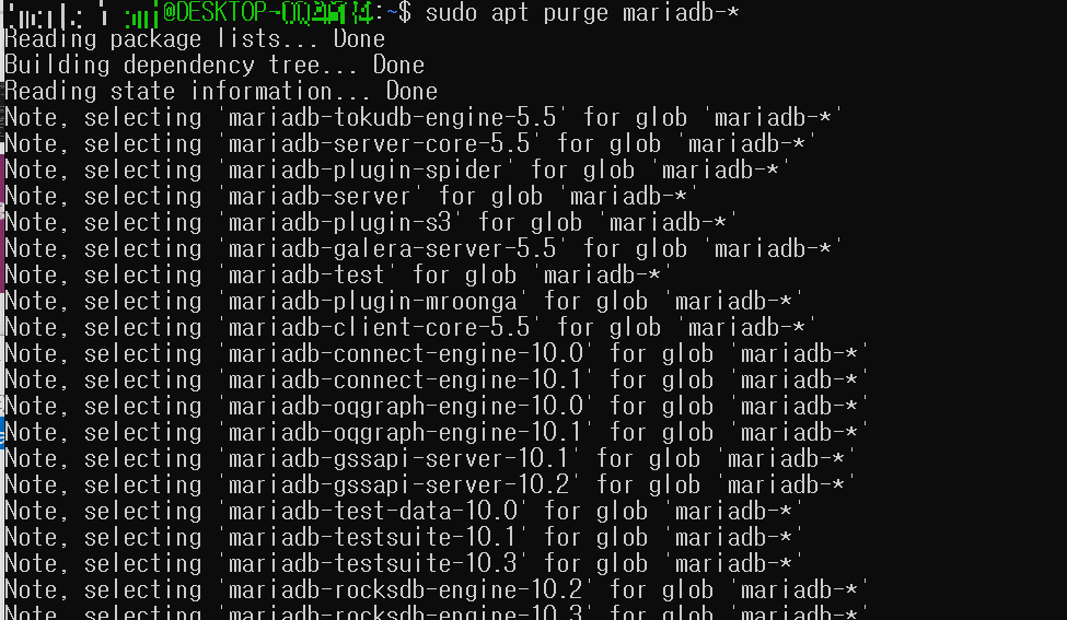 1-1. purge를 사용하여 mariadb의 설정 파일을 삭제